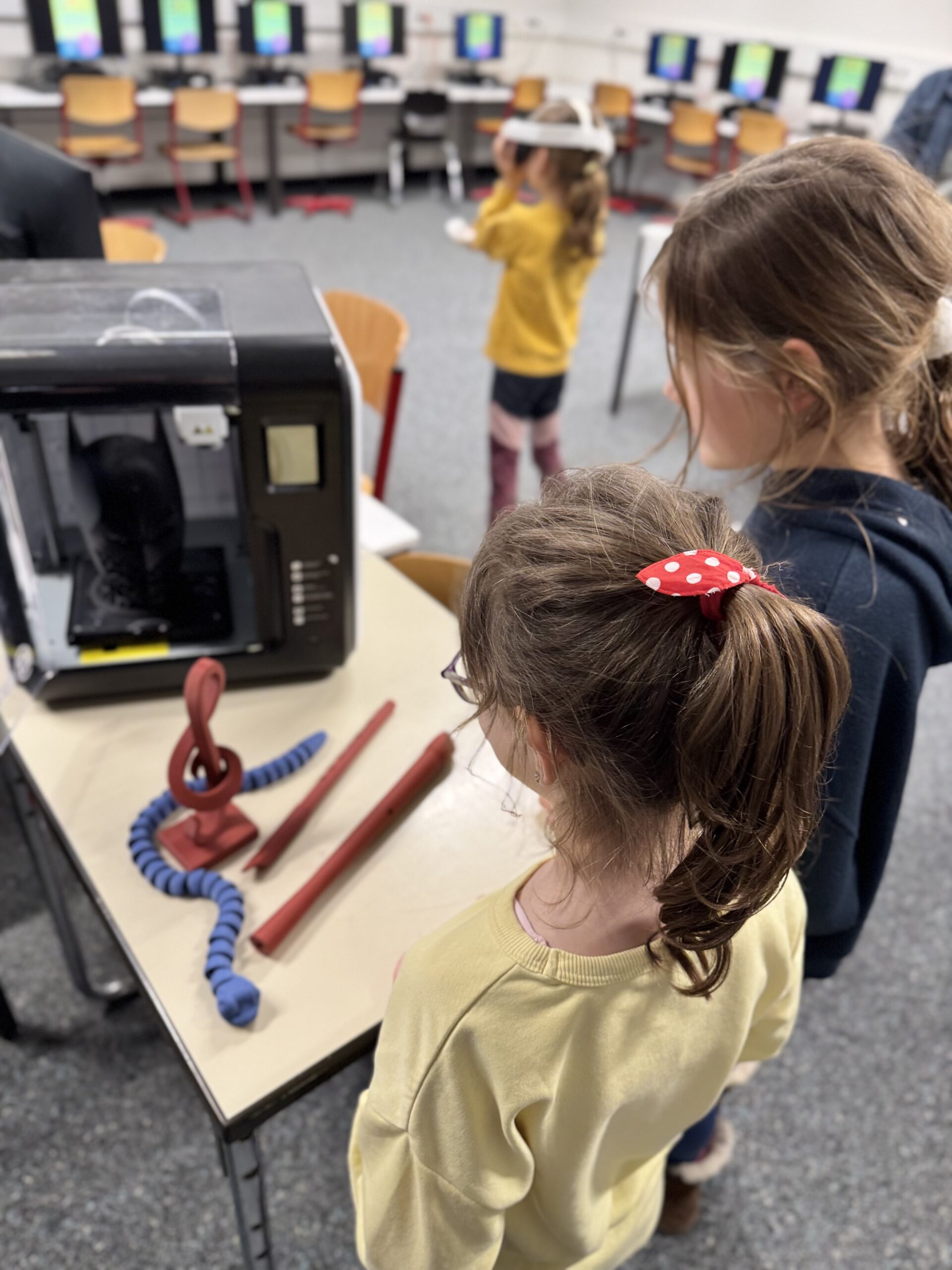 Die Türen standen weit offen, und es dauerte nicht lange, bis die Klassenzimmer und Flure von neugierigen Entdeckern gefüllt waren. Unser Ziel war es, den zukünftigen Fünftklässlern zu zeigen, was uns ausmacht: Eine Schule, in der Lernen Spaß macht, Kreativität gefördert wird und digitale Medien ganz selbstverständlich zum Alltag gehören.