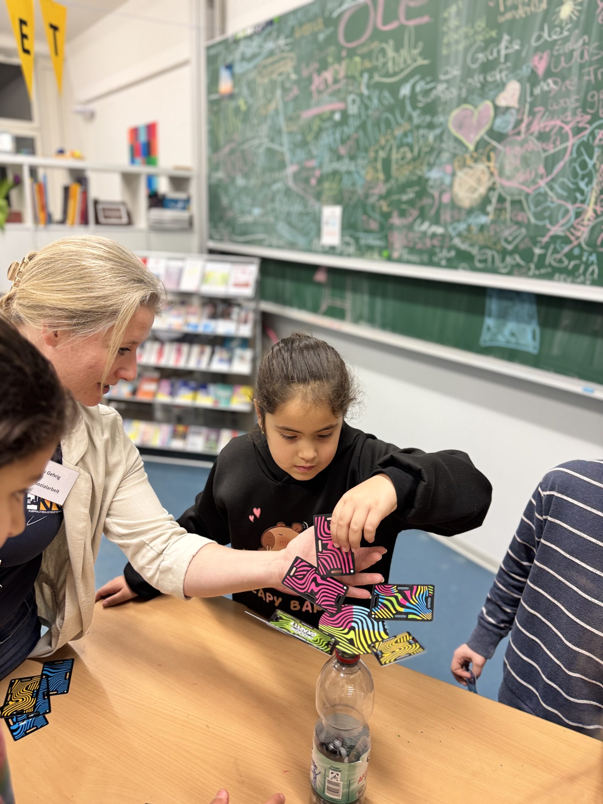 Schule ist mehr als nur das Klassenzimmer. Deshalb war es uns wichtig, dass unsere Gäste auch den Pausenhof kennenlernen – das Herzstück unserer Schulgemeinschaft. Der gut gefüllte Spieleschrank wurde sofort in Beschlag genommen, und die Kinder probierten begeistert die unterschiedlichen Pausenspiele aus. Es war schön zu sehen, wie schnell neue Freundschaften geknüpft wurden.