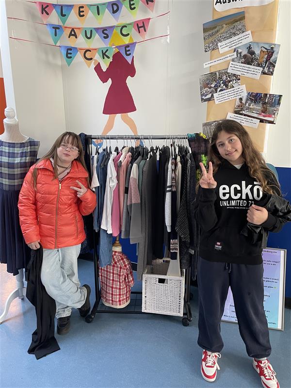 Dass das Konzept funktioniert, zeigen auch unsere jüngeren Schüler*innen: Sophia und Magdalena aus der 6. Klasse haben sich kürzlich sehr über eine neue Übergangsjacke und einen Pulli gefreut – echte Lieblingsstücke, die sonst vielleicht ungetragen geblieben wären.