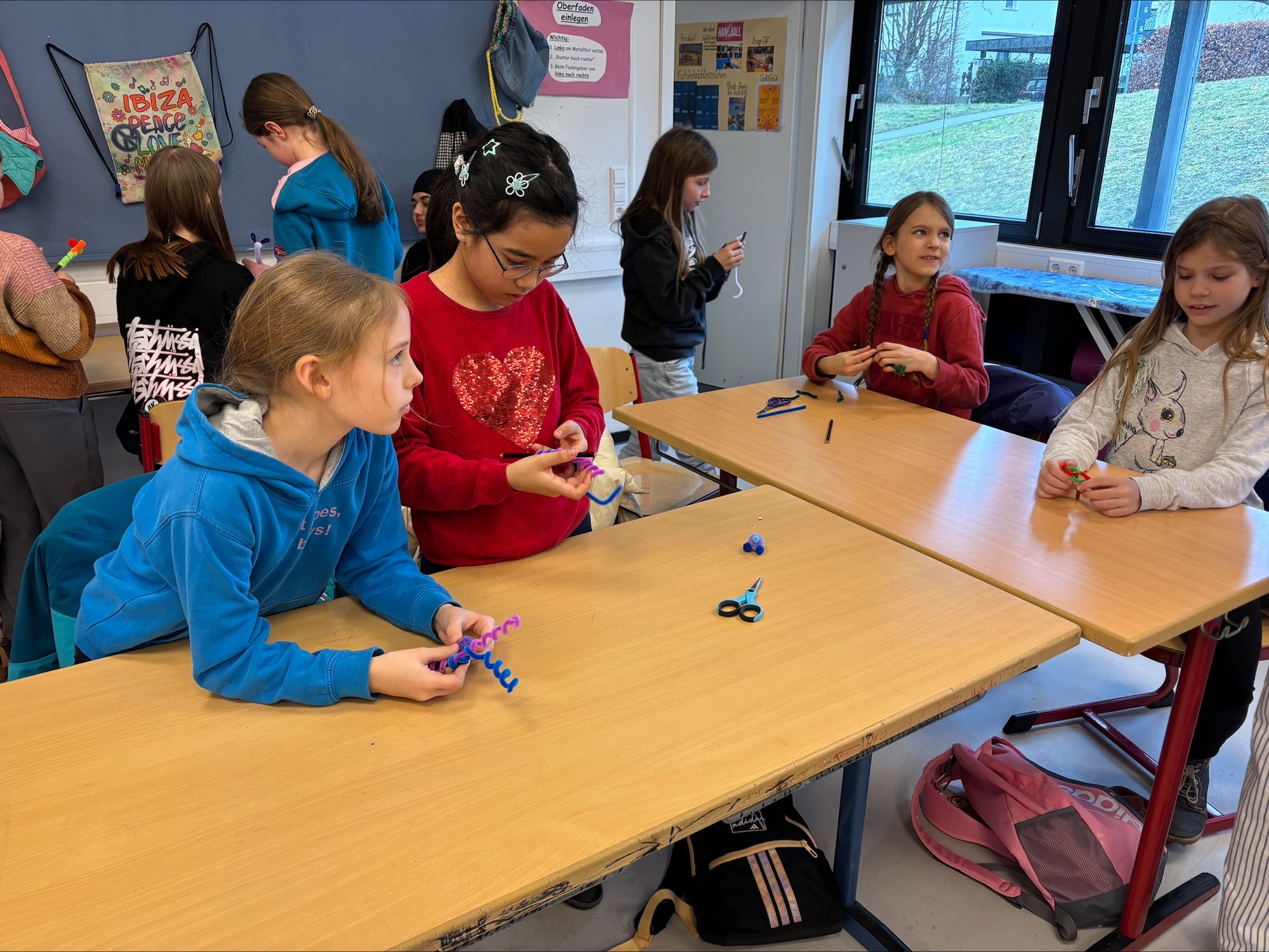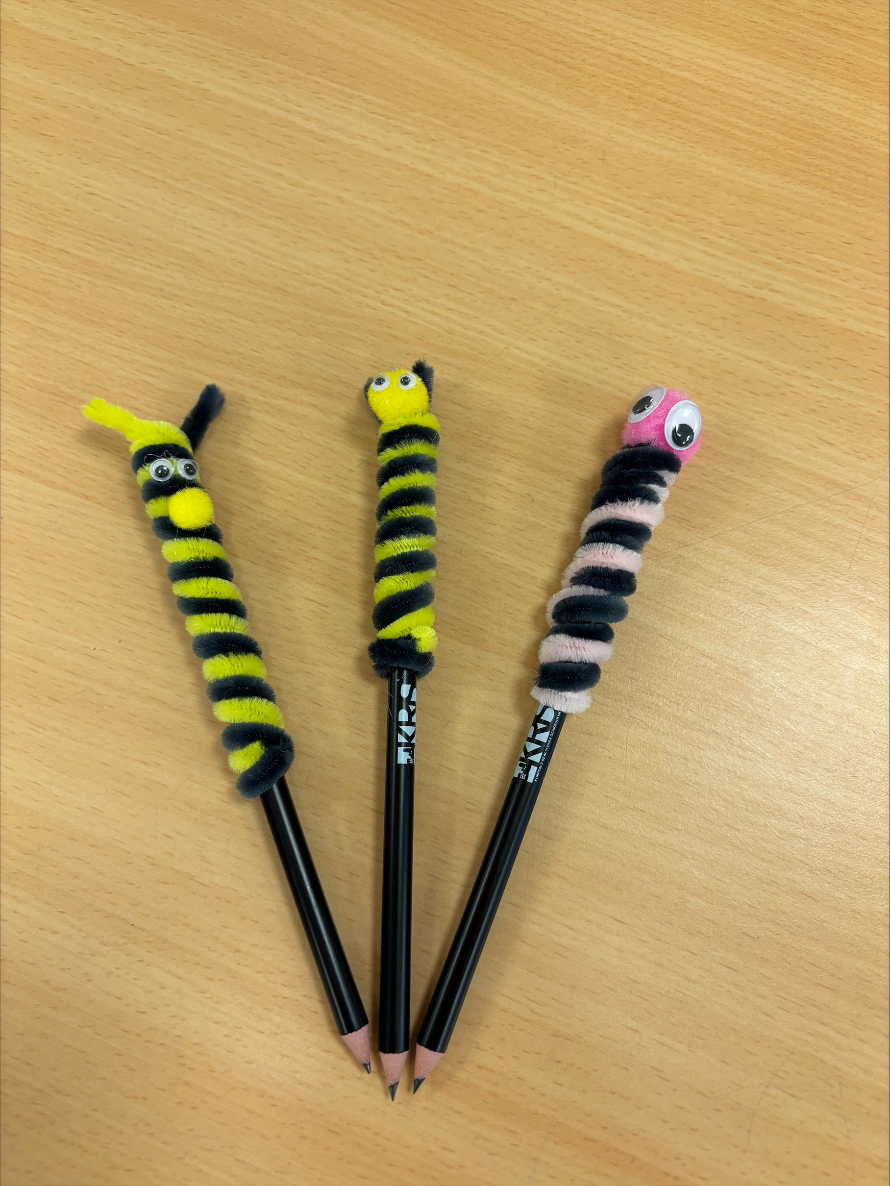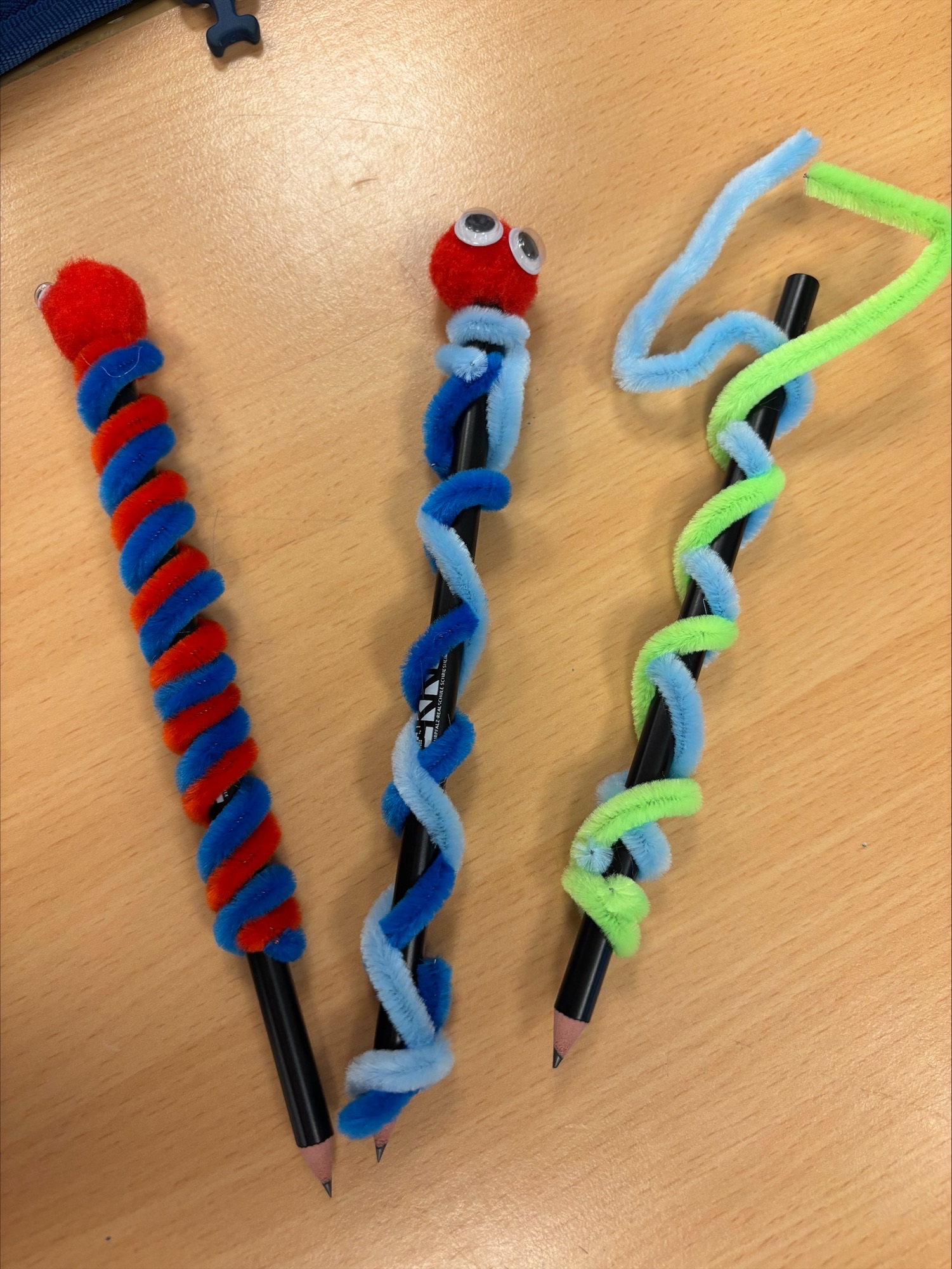 - AES (Alltagskultur, Ernährung, Soziales): Hier konnten die Kinder ihrer Fantasie freien Lauf lassen. Mit Pfeifenputzern, Wackelaugen und bunten Pompons wurden einfache Bleistifte in lustige, individuelle Schreibbegleiter verwandelt. Ein tolles Andenken für das Mäppchen!
