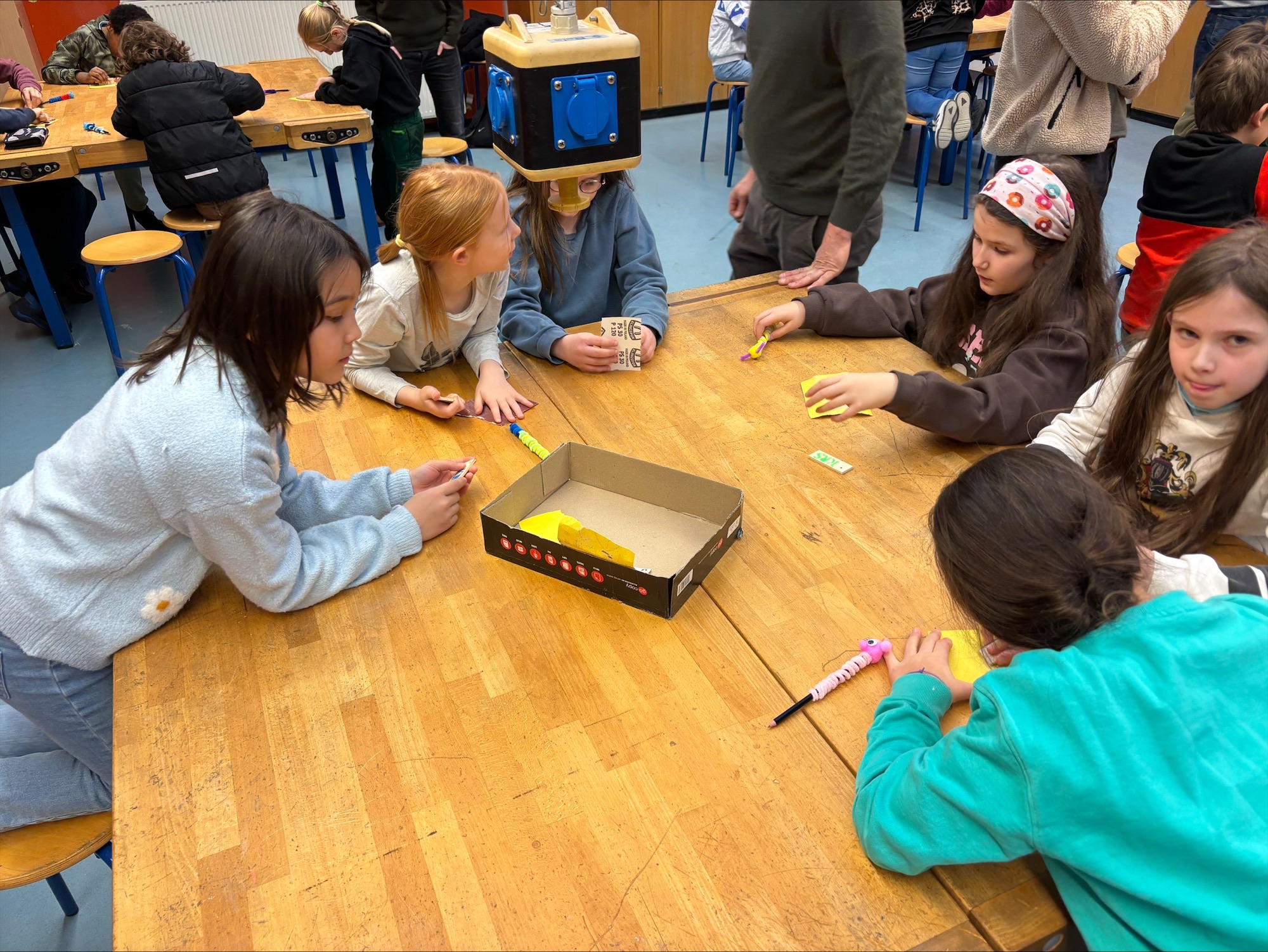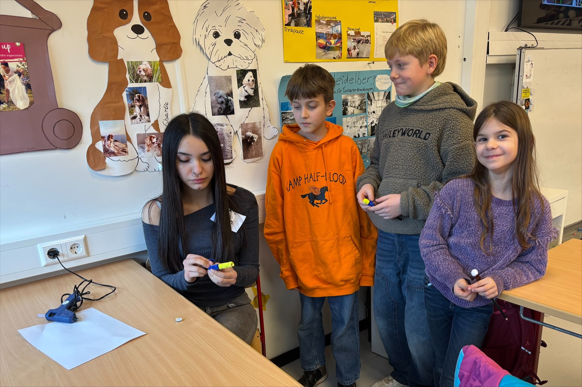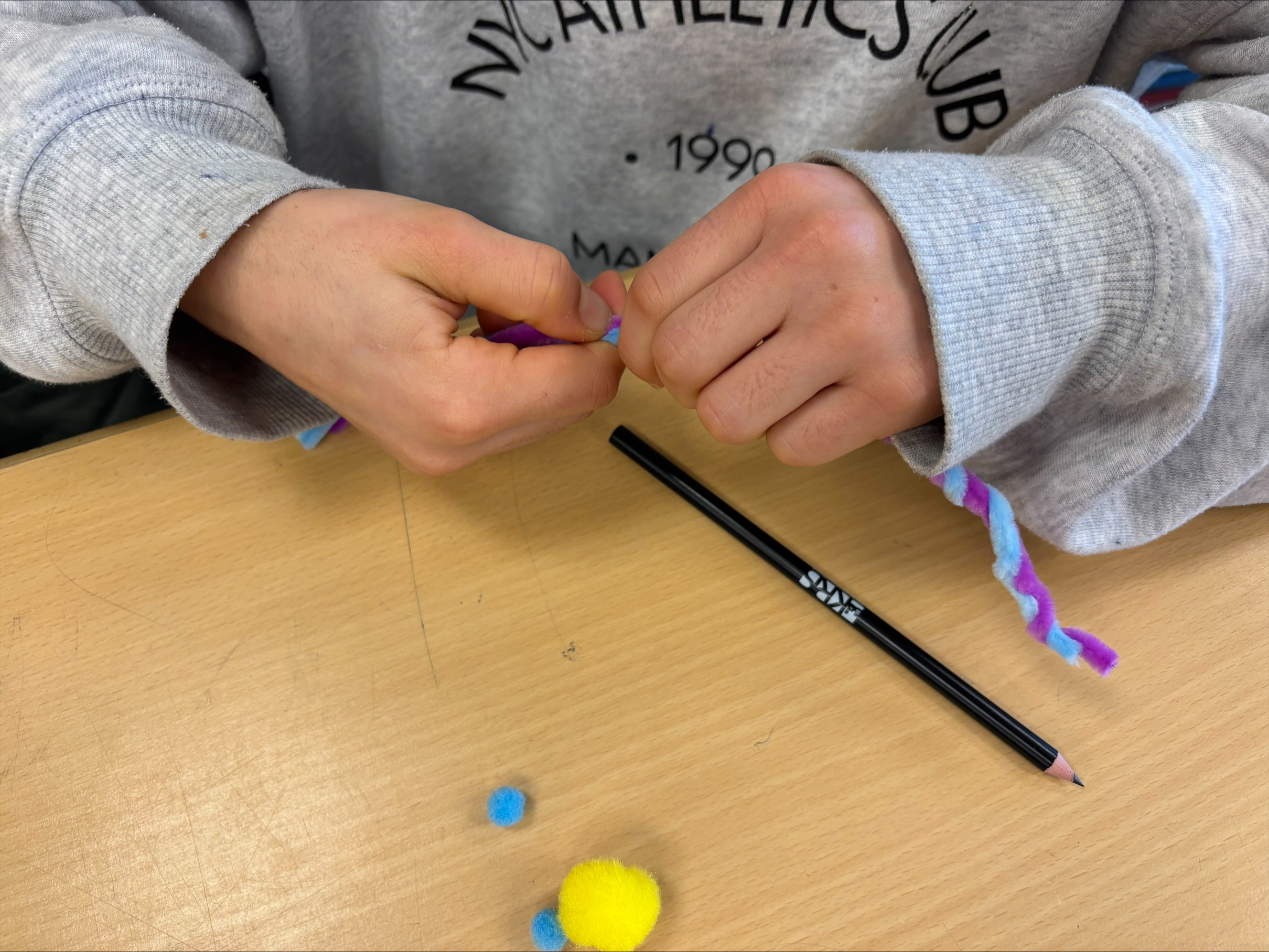 - AES (Alltagskultur, Ernährung, Soziales): Hier konnten die Kinder ihrer Fantasie freien Lauf lassen. Mit Pfeifenputzern, Wackelaugen und bunten Pompons wurden einfache Bleistifte in lustige, individuelle Schreibbegleiter verwandelt. Ein tolles Andenken für das Mäppchen!