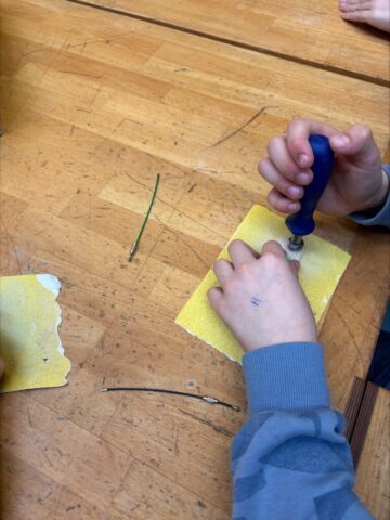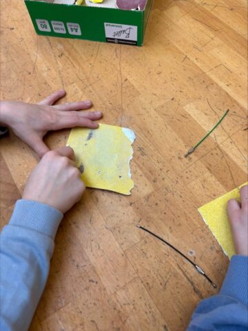 - Technik: In unseren Werkräumen roch es nach Holz und Tatendrang. Die Kinder durften selbst Hand anlegen, Kanten an Holzanhängern glatt schmirgeln und die Bohrungen professionell ausputzen. Das Ergebnis: Ein selbstgefertigtes Werkstück und stolze Gesichter.