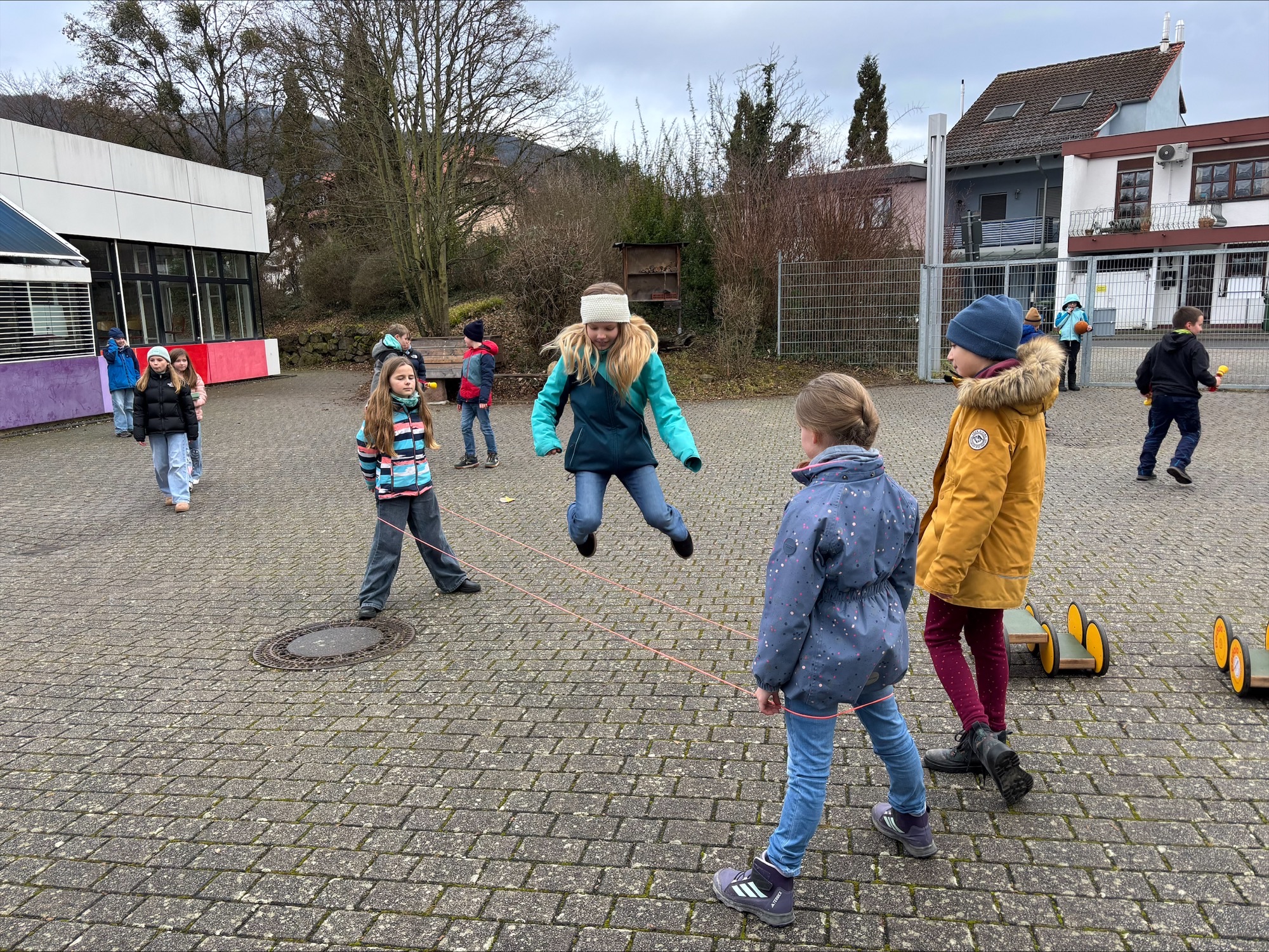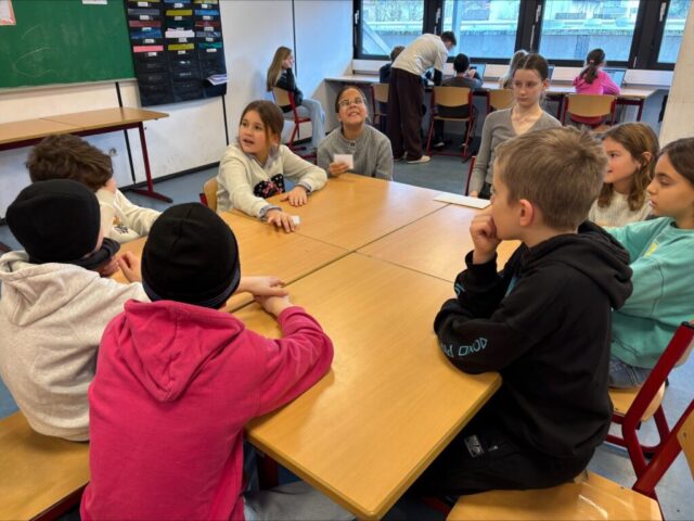Schule ist mehr als nur das Klassenzimmer. Deshalb war es uns wichtig, dass unsere Gäste auch den Pausenhof kennenlernen – das Herzstück unserer Schulgemeinschaft. Der gut gefüllte Spieleschrank wurde sofort in Beschlag genommen, und die Kinder probierten begeistert die unterschiedlichen Pausenspiele aus. Es war schön zu sehen, wie schnell neue Freundschaften geknüpft wurden.