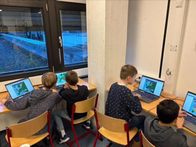 - Moderne Ausstattung: An den Laptops ordneten die Kinder Ländernamen digital den passenden Ländern zu.